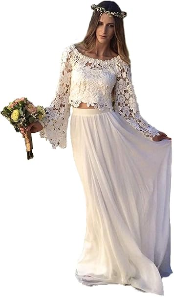 Dreammaking Damen Boho Spitze Hochzeitskleider Zweiteilig Standesamt Bohmischen Brautkleider Mit Lange Armel Schleppe Lang Ubergrosse Amazon De Bekleidung