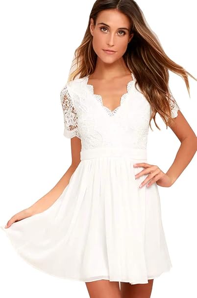 Vougemarket Damen A Linie Spitze Perlen Kurz Brautkleid Hochzeitskleid Standesamt Kleid Strandmode Mit Armel Amazon De Bekleidung