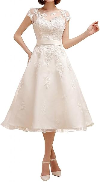 Elegantes A Linie Midi Standesamt Kleid Brautkleid Mit Armel Abendkleid