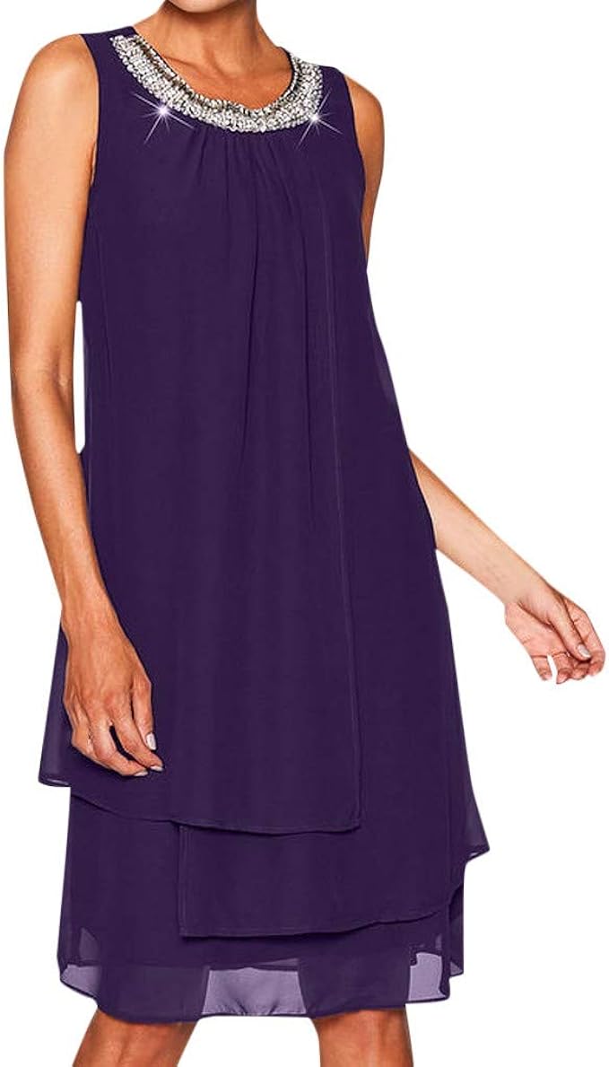 Uribaky Frauen Partykleid Chiffon Sommerkleider Grosse Grossen Damen Kleider Elegant Knielang Pailletten Oansatz T Shirtkleid Armellos Beilaufiges Schaukel Amazon De Bekleidung