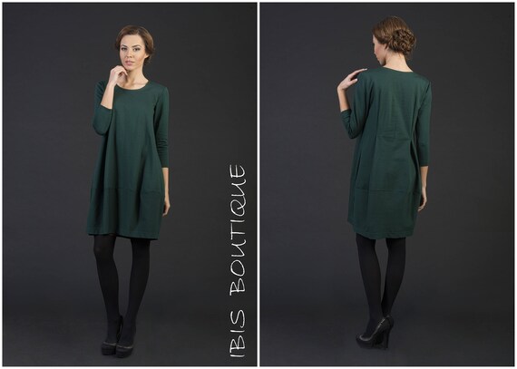 Dunkelgrun Maxi Frau Kleid Plus Grosse Grossen Lange Armel Etsy