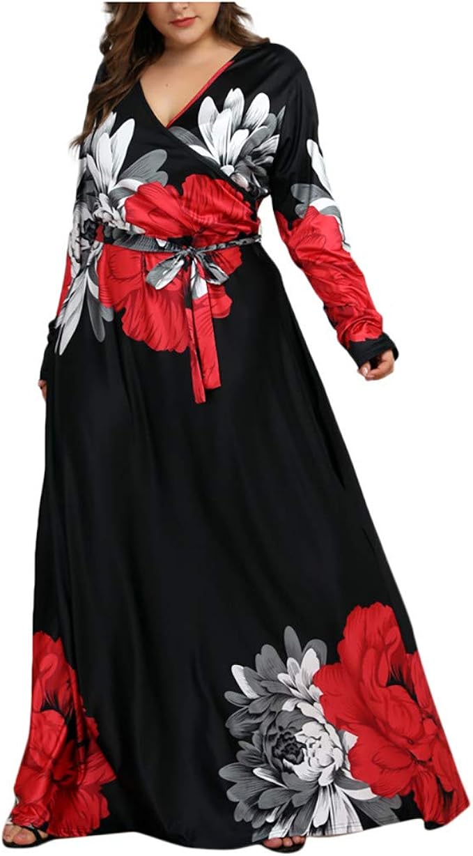 Lopily Abendkleider Grosse Grossen Blumen Druckkleider Mollige Maxikleider Hohe Taillen Cocktailkleider Kurzarm Wickelkleid Chiffonkleider Bandeaukleider Amazon De Bekleidung