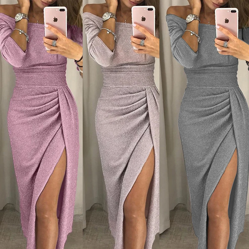 Crossed Reality Kaufen Gunstig Gumprun 2018 Neue Sexy Kleid Weg Von Der Schulter Hohe Slit Langes Herbst Winter Frauen Lange Armel Taille Party Preise Online
