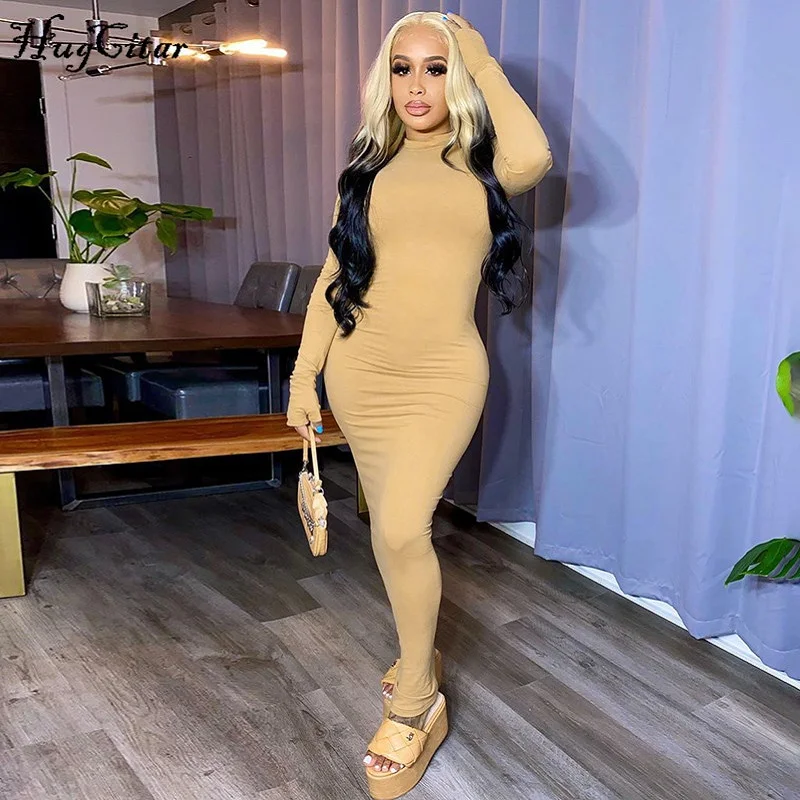 Hugcitar 2020 Lange Hulse Mit Handschuhe Backless Bodycon Sexy Maxi Kleid Herbst Winter Frauen Mode Streetwear Partei Elegante Tragen Kleider Aliexpress