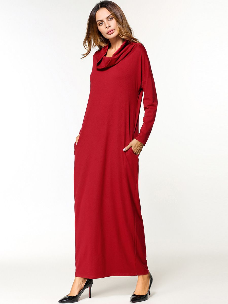 Grosshandel Solide Rollkragen Maxi Langes Kleid Frauen Herbst Langarm Kleider Muslim Uae Turkische Schlanke Roben Burgundy Plus Grosse Von Free Life06 13 78 Auf De Dhgate Com Dhgate