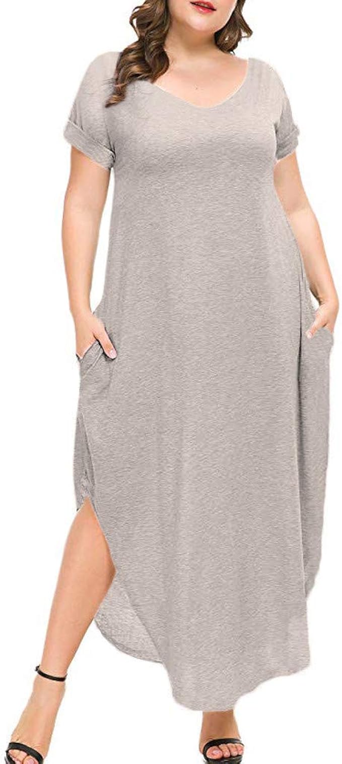 Sommerkleider Damen Langes Kleider Grosse Grossen Frauen Sommer Frauen V Ausschnitt Lose Kurze Armel Side Split Maxi Kleider Lassige Kleidung Strandkleider Tunika Kleid Partykleider Amazon De Bekleidung