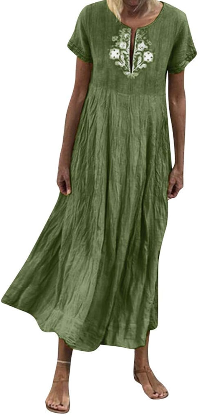 Momoxi Damen Sommerkleid Casual Lose Taschen Lange Kleid Kurze Hulsen Aufgeteilte Maxi Kleider Der Frauen Festliches S In 2020 Kleider Damen Sommerkleid Sommer Kleider