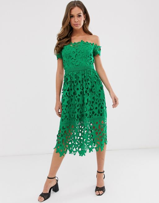 Chi Chi London Dresses Chi Chi London Premium Lace Midi Dress Bardot Neck Poshmark