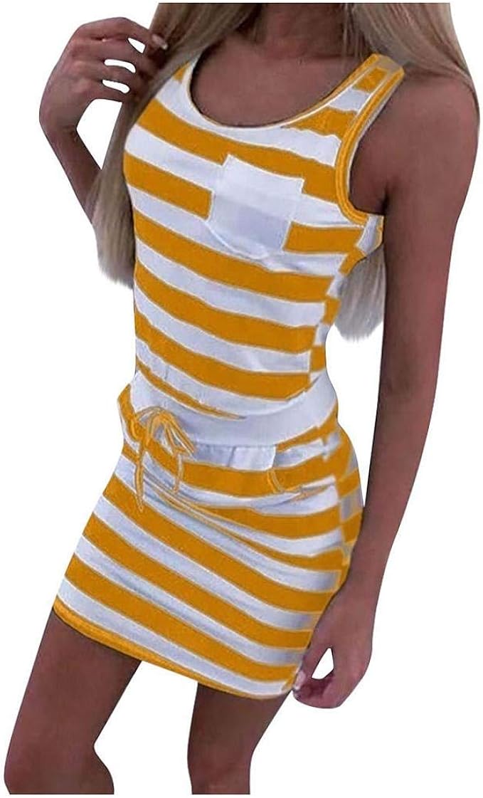 Tomatoa Damen Kleider Sommer Strandkleid Streifenkleid Frauen Freizeitkleid Midi Kleider Knielang Sommerkleider Grosse Grosse S 5xl Amazon De Bekleidung