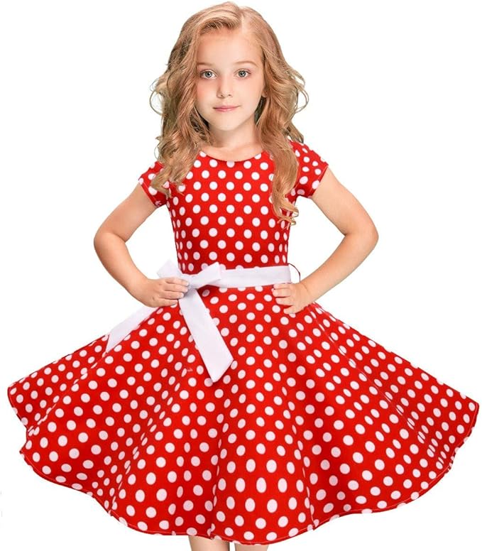 Dqaniu Dqaniu Madchen Kleid Rock Kinder Madchen Vintage Kleid Polka Dot Prinzessin Swing Rockabilly Party Kleider 2y 12y Kleider Amazon De Bekleidung