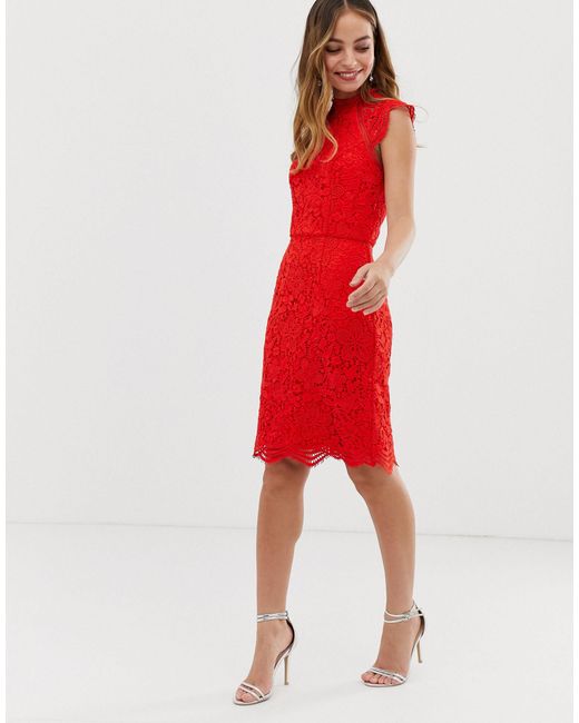 Chi Chi London Hochgeschlossenes Kleid Aus Spitze In Muscheloptik Dresses High Neck Lace Dress Red Bridesmaid Dresses