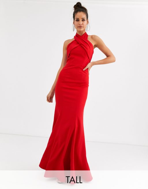 Chi Chi London Tall Rotes Maxikleid Mit Uberkreuztem Neckholder Design Asos