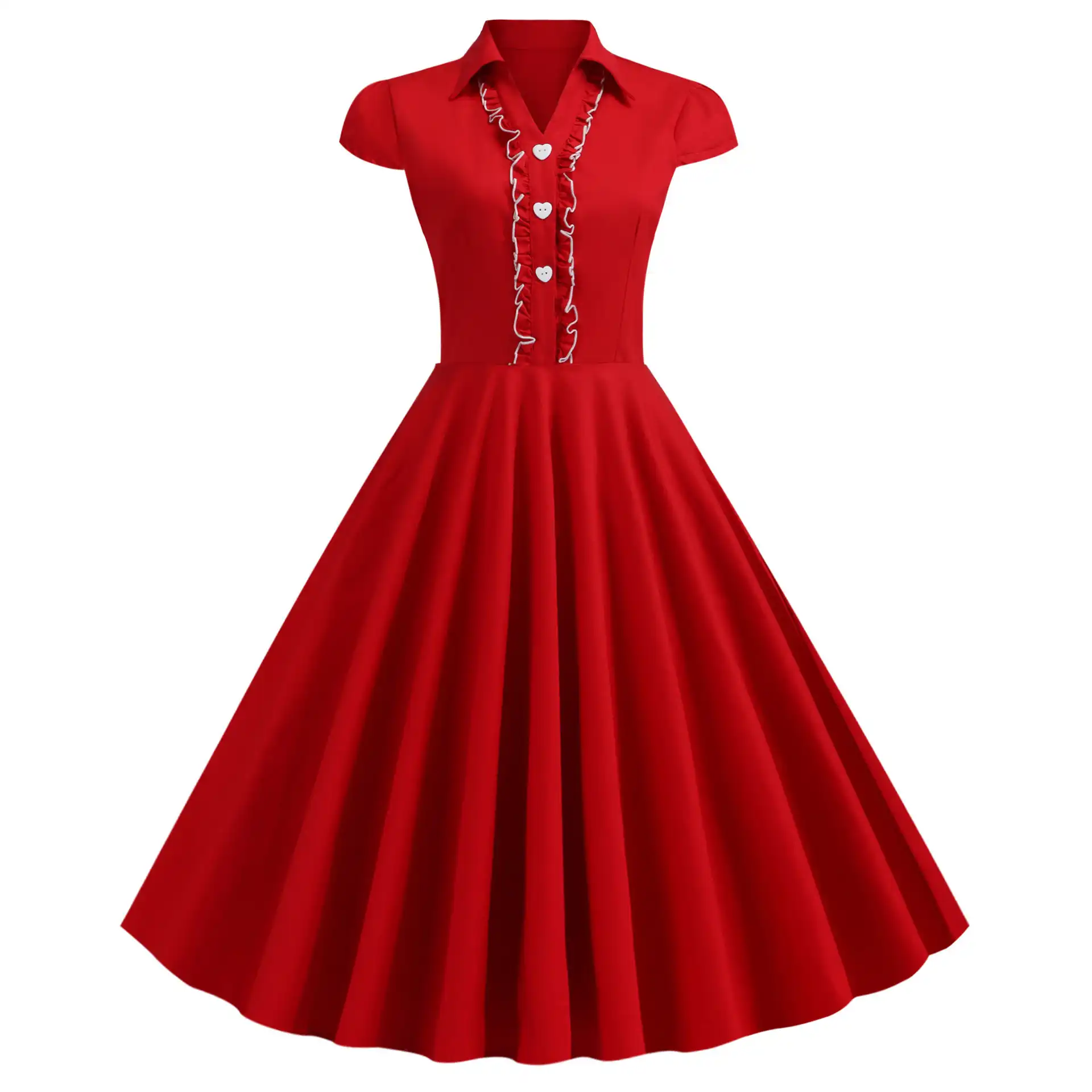 Elegante Kurzarm Party Rockabilly Kleider Rot Drehen Unten Kragen Robe Casual Retro 60 50s S Vintage Vestidos Frauen Kleidung Kleider Aliexpress