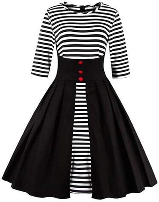 Timitai Frauen Stripe Stitching Print Beilaufige Lose Halbe Armel Kleid 1950 Elegante Rundhalsausschnitt Vintage Kleid Amazon De Bekleidung