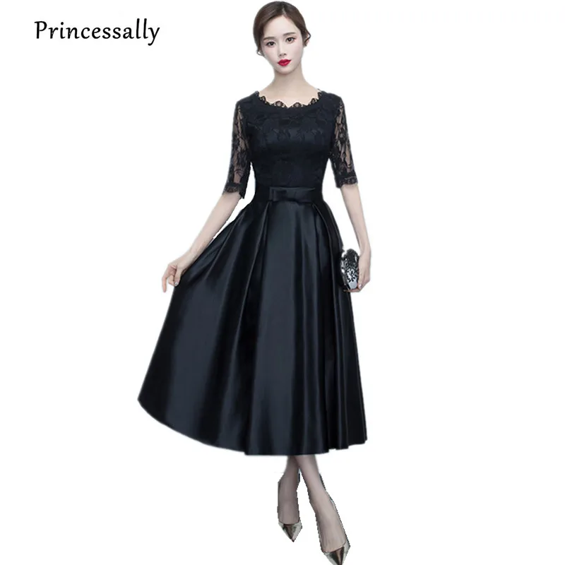 Grosshandel Hot Stil Spitze Und Tull Schwarz Ballkleider Halbarm Offenen Rucken Vintage Kleid Fu Abschlussball Kleider Abendkleid Abschlussball Kleider Schwarz