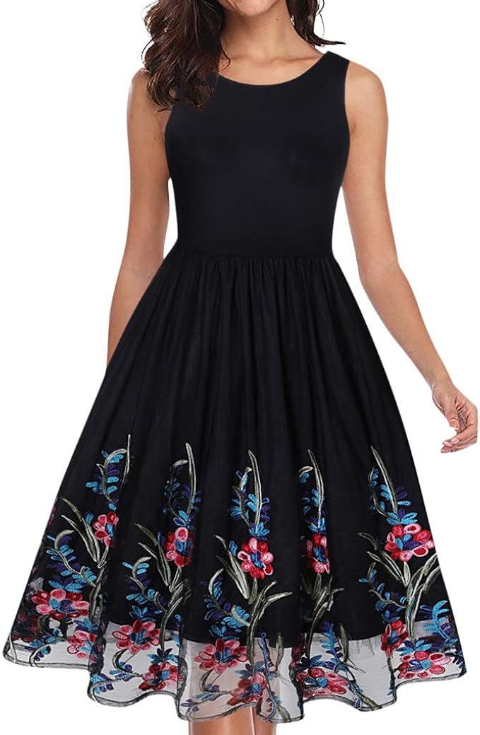 Vimoli Kleider Damen Frauen Weinlese Blumen Bodycon Armellose Schon Beilaufige Abend Partei Abschlussball Rockabilly Kleid Schwarz L Amazon De Bekleidung